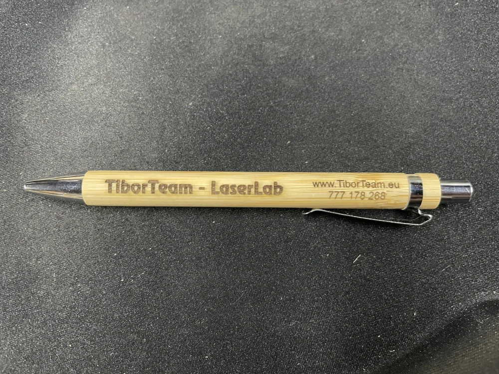 Stylová bambusová propiska s gravírováním představuje spojení přírodního designu a moderní laserové technologie. Tělo z bambusu dodává peru elegantní vzhled a příjemný úchop, zatímco přesné laserové značení zaručuje trvanlivost a čistý vzhled loga i textu. Propiska je ekologickou alternativou k plastovým reklamním předmětům a ideální volbou pro firemní prezentace, dárky nebo kancelářské použití. Praktický doplněk, který v sobě spojuje estetiku, funkčnost i udržitelnost.
